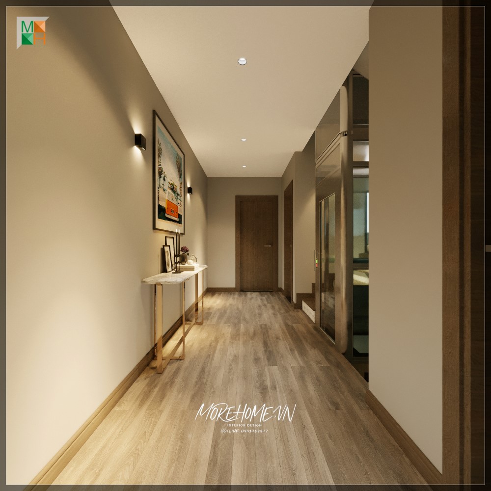 Sự sắp xếp thông minh và sử dụng hệ thống tủ kệ âm tường treo tivi đã tạo ra một vẻ đẹp thoáng đãng và tinh tế trong thiết kế nội thất phòng khách của chung cư hiện đại.