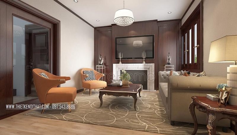 Ghế sofa đơn phòng khách cổ điển bọc da màu nâu, khung gỗ tự nhiên vững chắc sẽ là lựa chọn tuyệt vời để gia chủ thư giãn, đọc sách và trò chuyện.