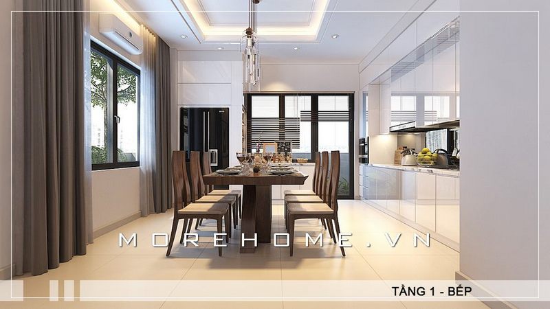 Kiến trúc nội thất phòng ăn biệt thự hiện đại, sang trọng sẽ tạo nên một không gian cao cấp, ấm áp và thân thiện cho không gian ngôi nhà.