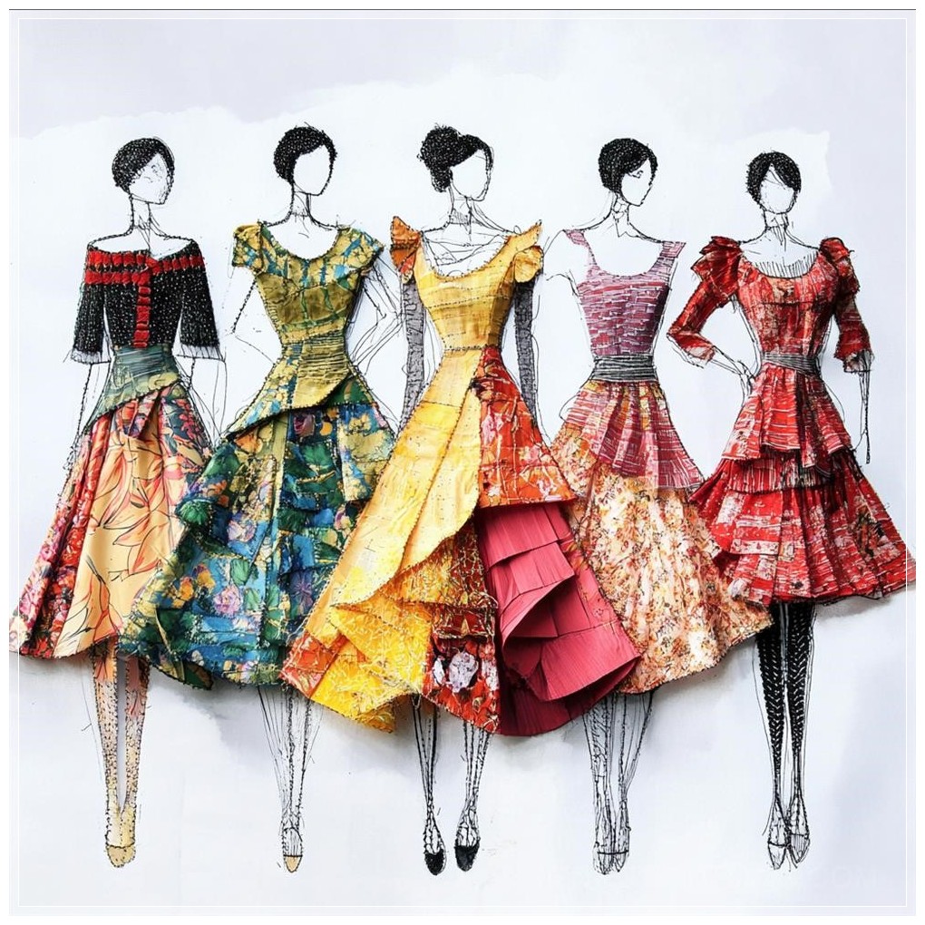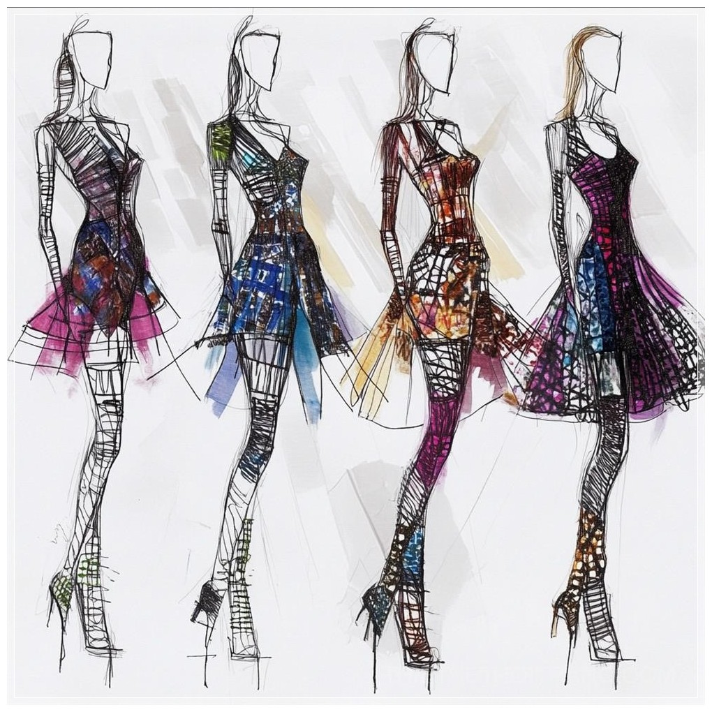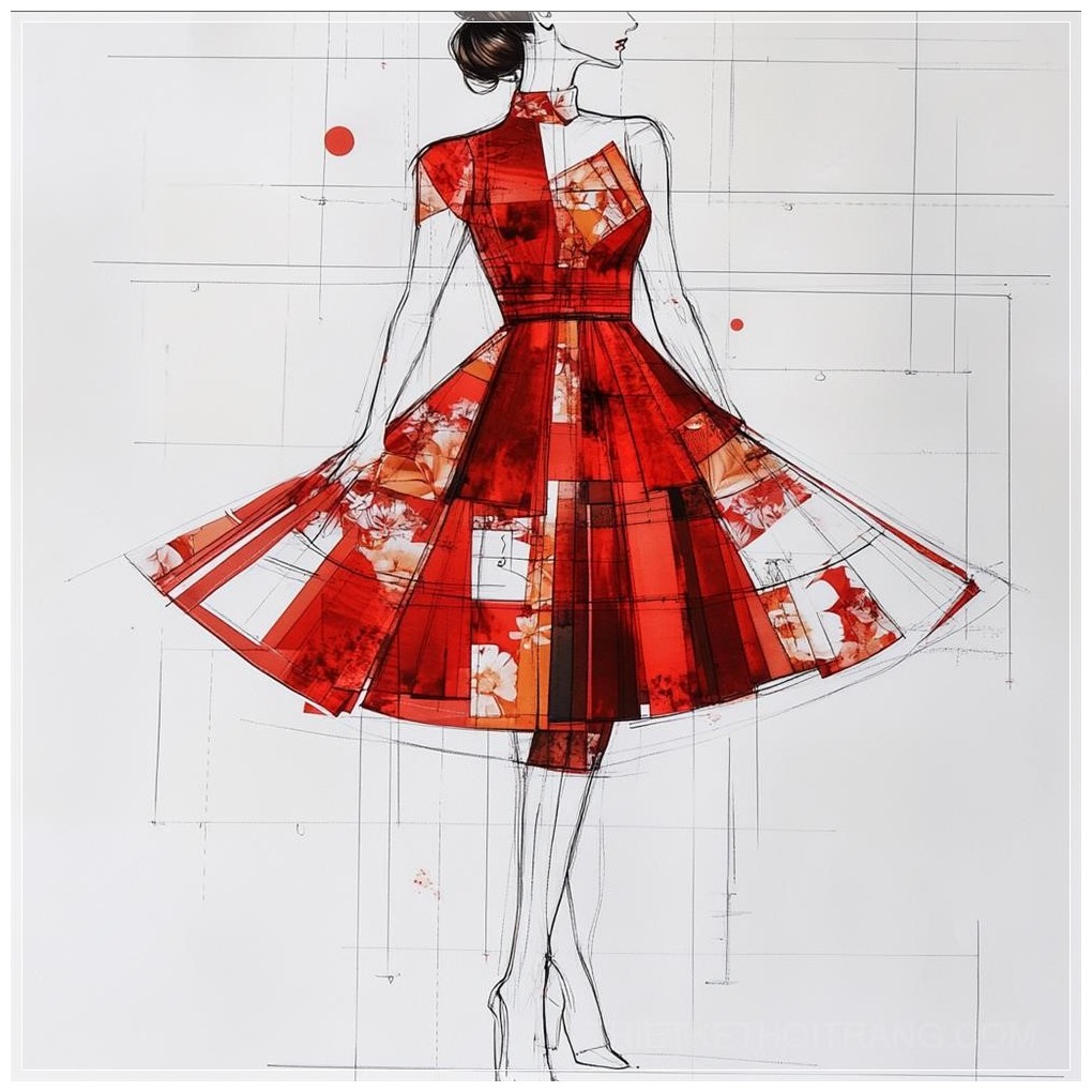 PROMPT: stitching diagram fashion Ý Nghĩa: Sơ đồ may là một biểu đồ chi tiết mô tả cách các phần của một trang phục được kết nối với nhau qua các đường may, cung cấp hướng dẫn cho việc cắt và ghép các mảnh vải thành một sản phẩm hoàn chỉnh.