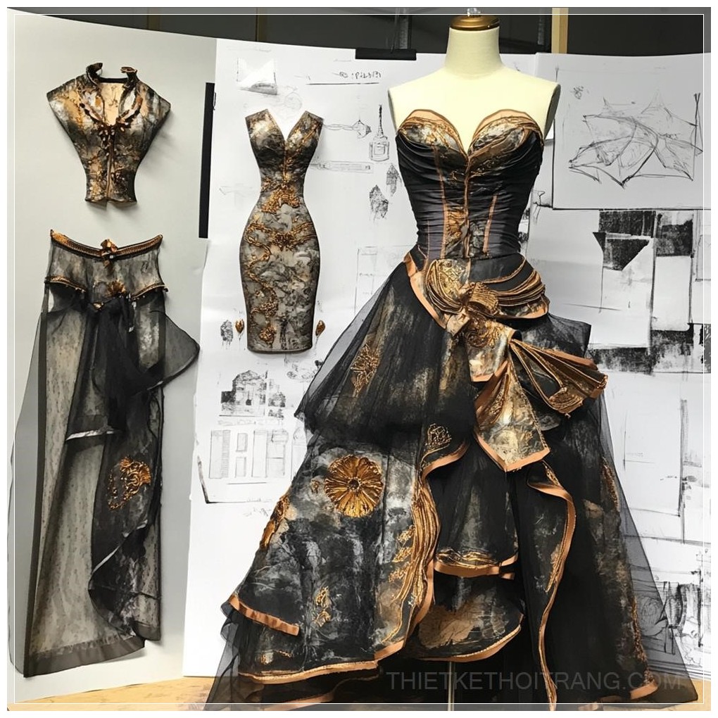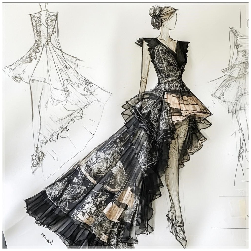 PROMPT: fashion design Ý Nghĩa: Thiết kế thời trang là quá trình sáng tạo và phát triển trang phục, bao gồm việc lựa chọn vải, kiểu dáng, màu sắc và chi tiết trang trí để tạo ra các bộ trang phục phù hợp với xu hướng, thẩm mỹ và nhu cầu sử dụng.