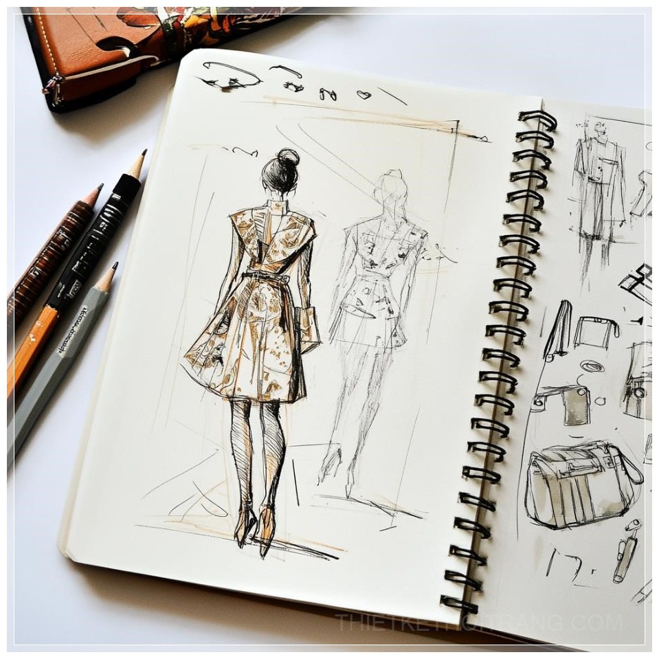 PROMPT: blank fashion sketchbook page --v 6.1 Ý Nghĩa: Một trang sách vẽ thời trang trống, sẵn sàng để khởi đầu những ý tưởng thiết kế mới.