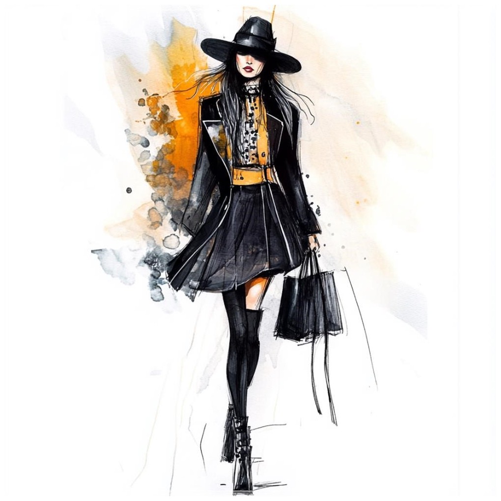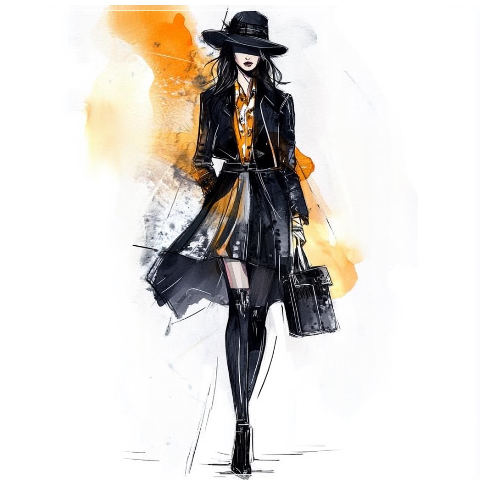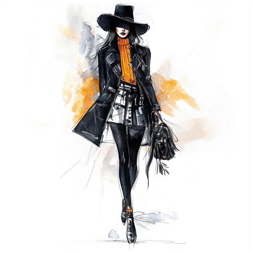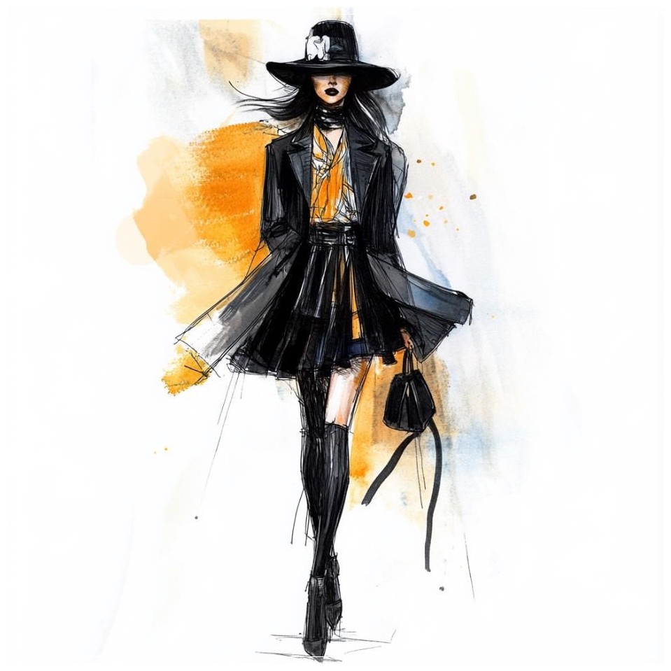 PROMPT: stylish fashion sketch, fashion girls, fashion week, illustration Ý Nghĩa: Phác thảo thời trang tinh tế với các cô gái thời trang, tham gia tuần lễ thời trang, minh họa đầy ấn tượng.