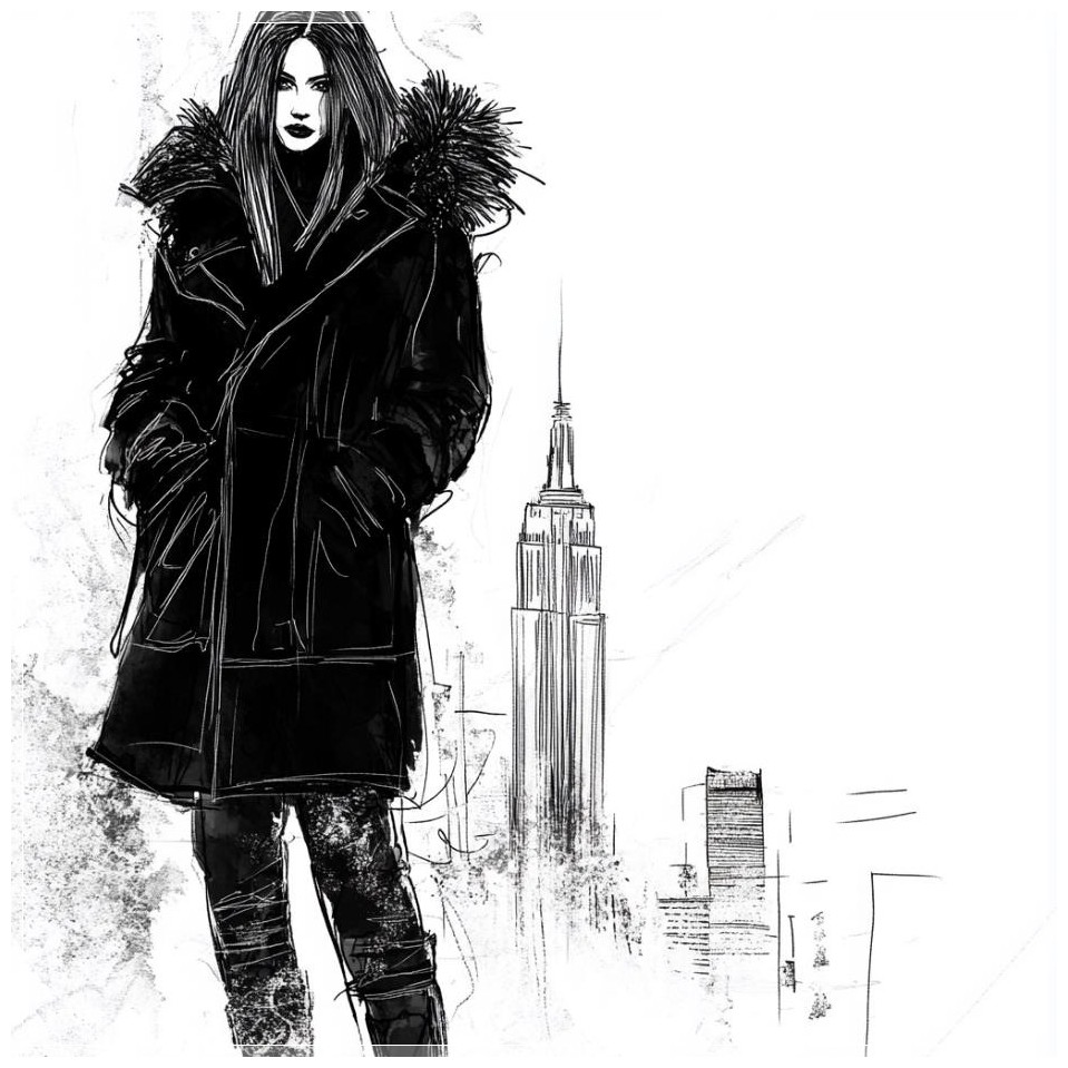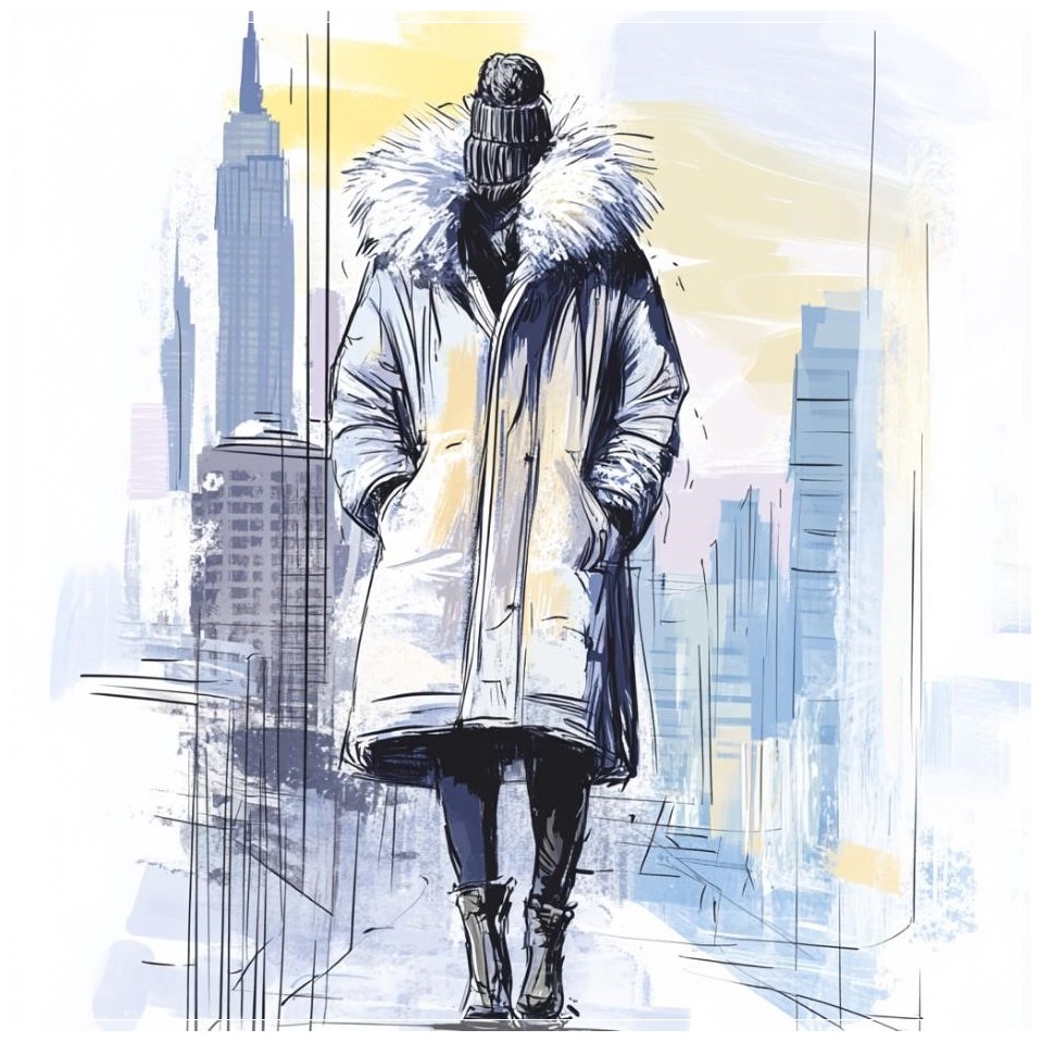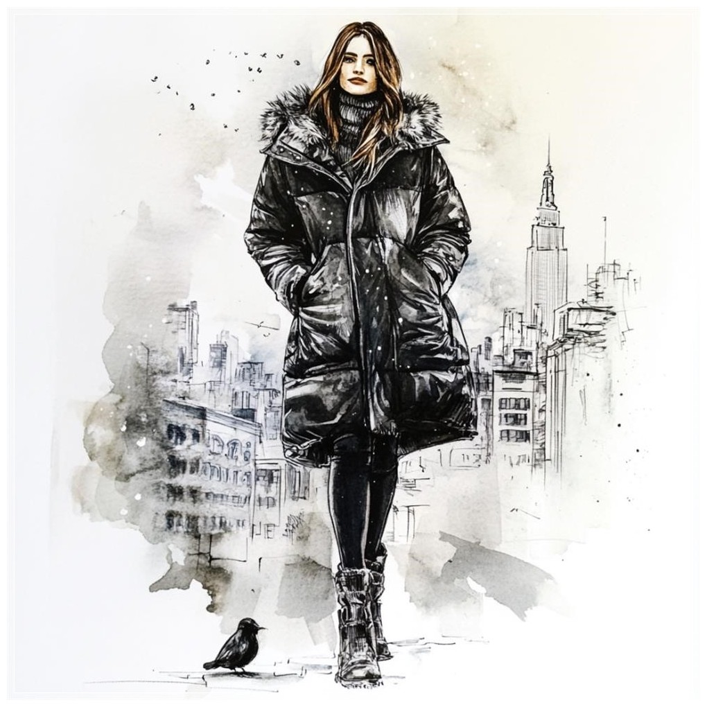 PROMPT: Fashion sketch, long down coat, New York City background --v 6.1 Ý Nghĩa: Phác thảo thời trang với áo khoác dài, nền là thành phố New York, thể hiện phong cách thanh lịch và hiện đại, tạo nên vẻ đẹp sang trọng và ấn tượng.