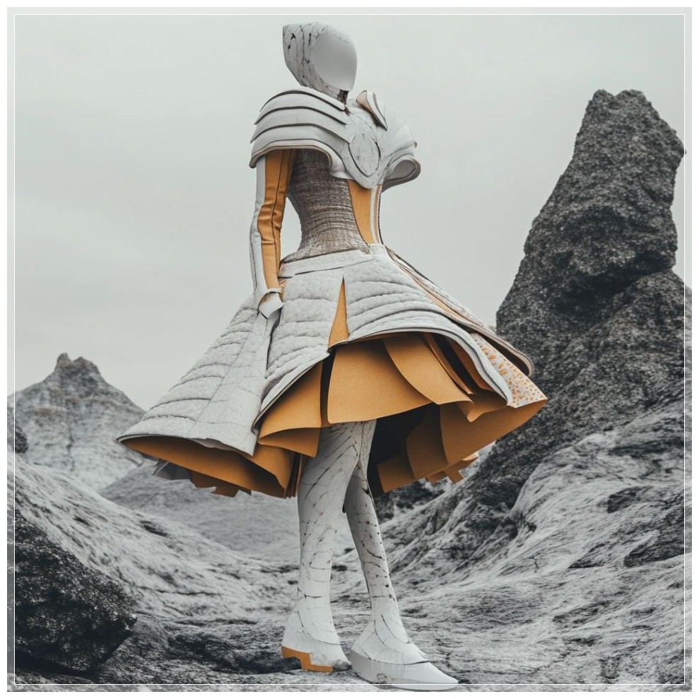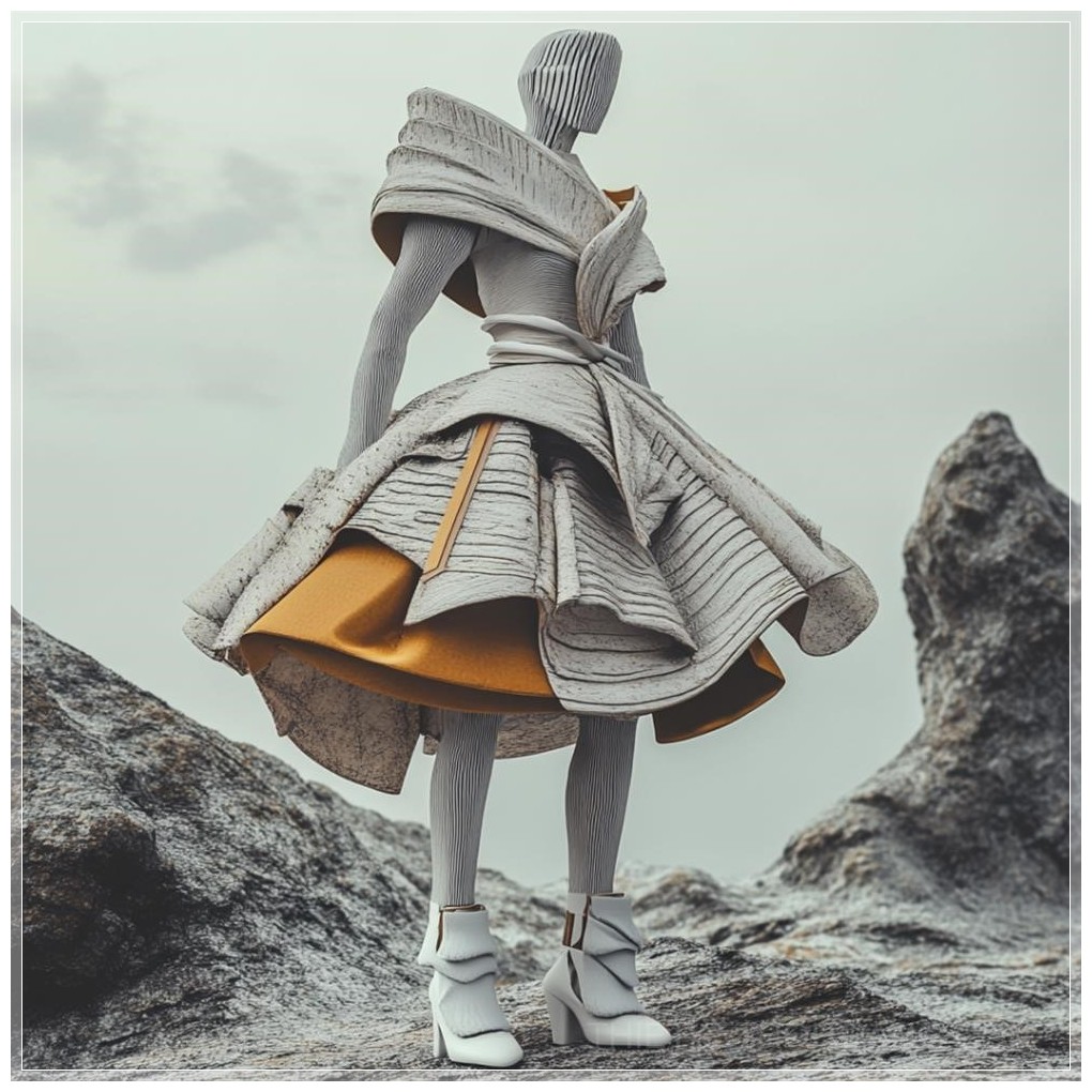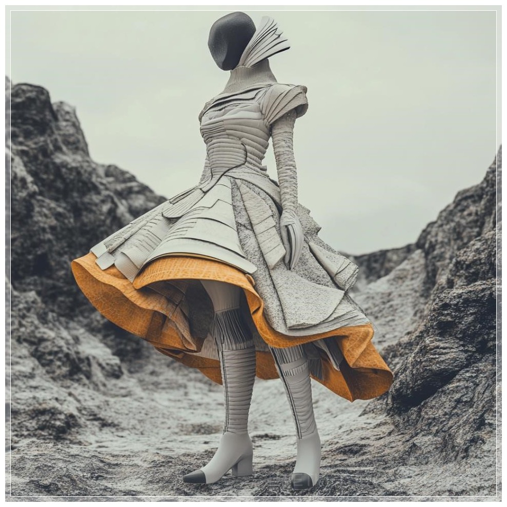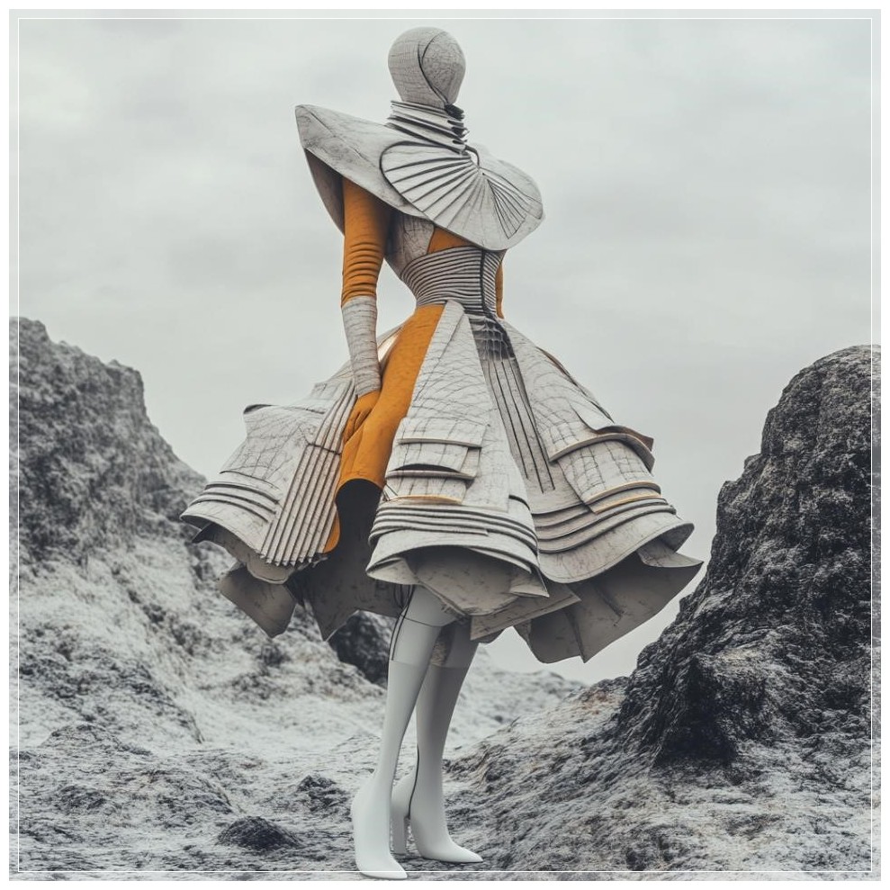PROMPT: surreal dress , different color and texture combine, futuristic outfit, --v 6.1 Ý Nghĩa: Trang phục siêu thực, kết hợp các màu sắc và kết cấu khác nhau, tạo nên một bộ trang phục tương lai đầy ấn tượng.