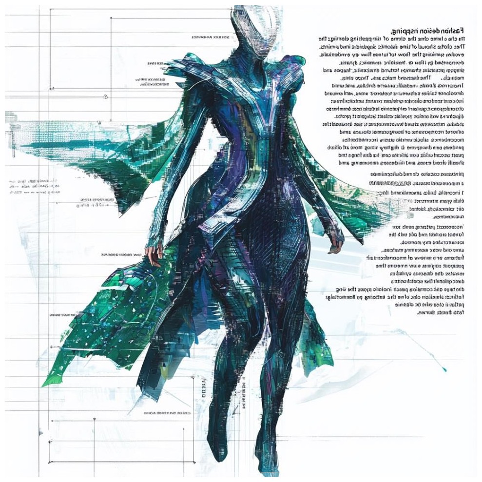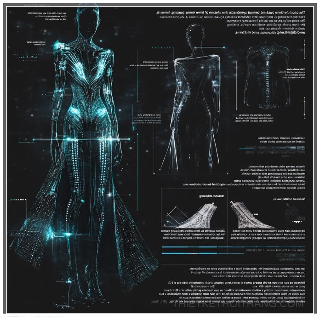 Thiết kế thời trang lấy cảm hứng từ chủ đề thời gian trôi qua, kết hợp các yếu tố tương lai. Những bộ trang phục này biểu trưng cho dòng chảy của thời gian, sử dụng các hình dạng và vật liệu thay đổi, phát triển. Kết hợp vải kim loại, kết cấu óng ánh và họa tiết kỹ thuật số gợi nhớ đến sự trôi qua của thời gian. Tạo cảm giác chuyển động nhanh và chậm qua sự không đối xứng, vải xếp lớp và dáng vẻ sáng tạo. Thêm các chi tiết công nghệ như ánh sáng phát sáng hoặc hiệu ứng hình ảnh ba chiều. Thiết kế tổng thể mang cảm giác tinh tế, hiện đại và tiên phong với ảnh hưởng khoa học viễn tưởng, đồng thời thể hiện bản chất thoáng qua của thời gian.