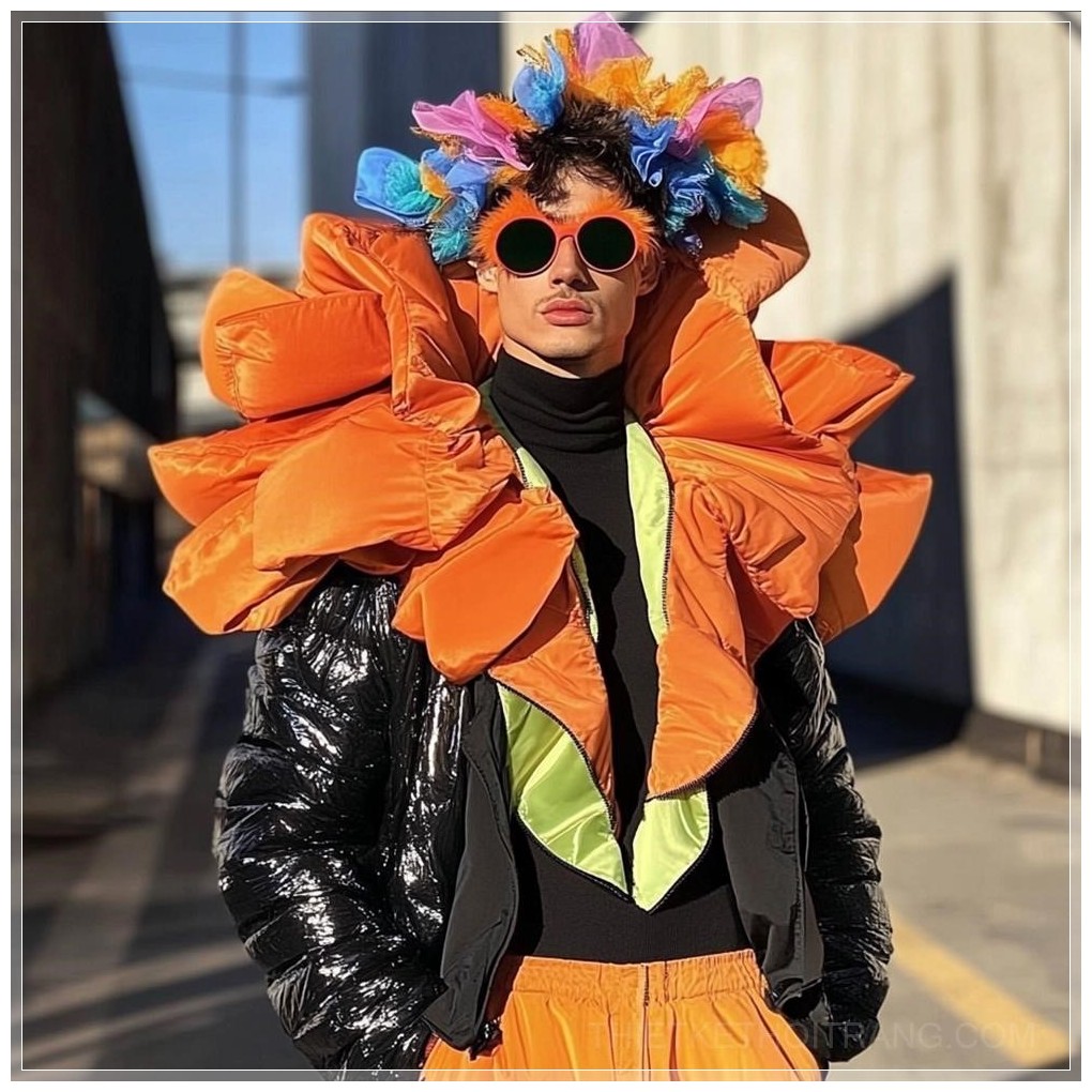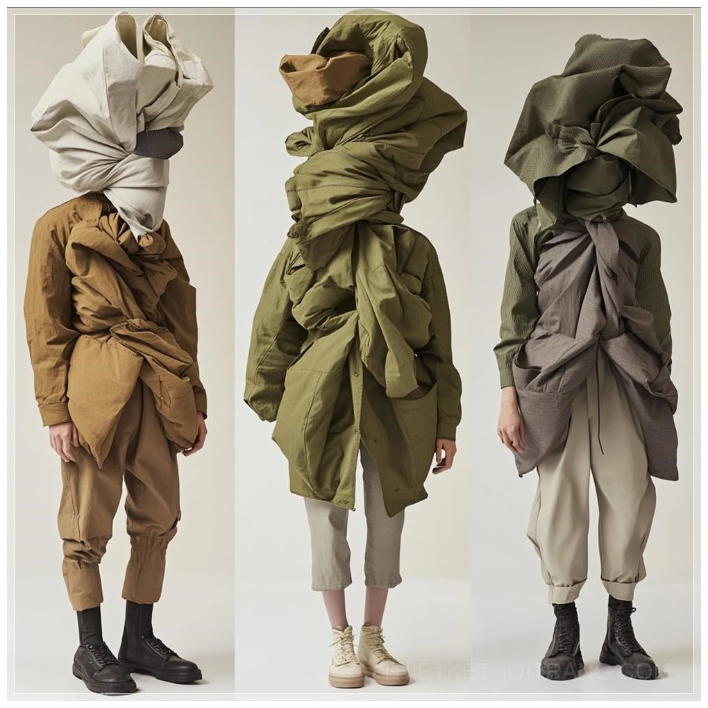 PROMPT: fashion that you are confused on how to wear it Ý Nghĩa: Câu nói miêu tả cảm giác phân vân khi phải lựa chọn cách mặc một bộ trang phục, có thể vì sự phức tạp hoặc không chắc chắn về cách thức phối hợp chúng sao cho phù hợp.