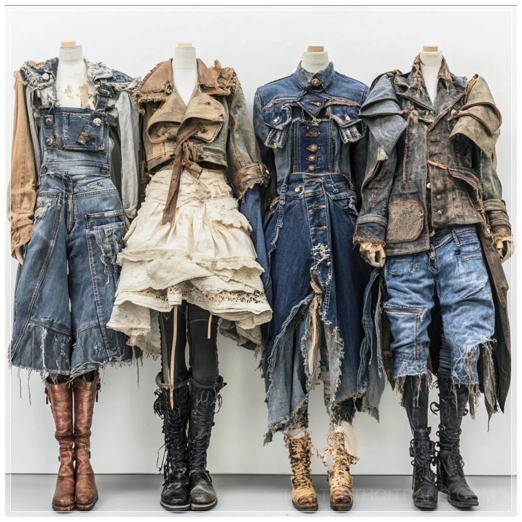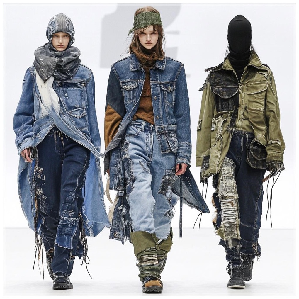 Bộ sưu tập trang phục thú vị theo phong cách Balenciaga, dành cho sàn diễn thời trang, sử dụng chất liệu denim và mang đậm phong cách tương lai, tạo nên một xu hướng thời trang độc đáo và tiên tiến.