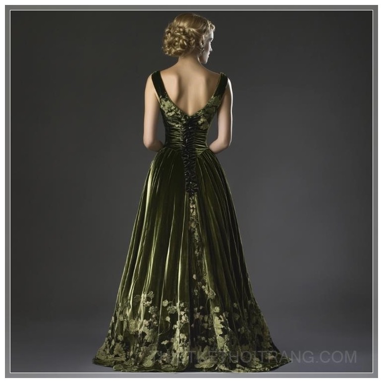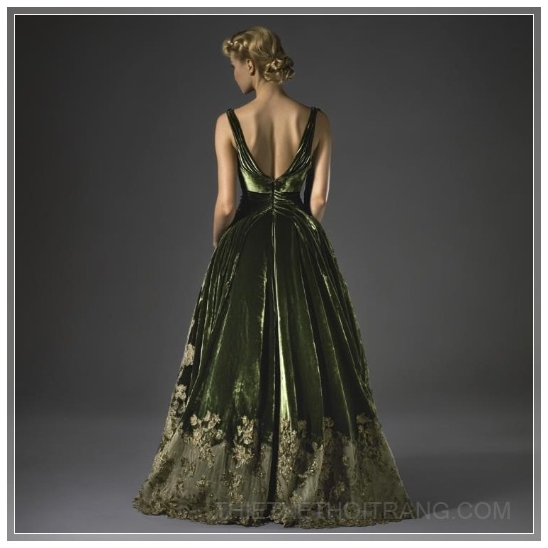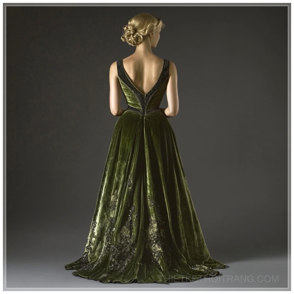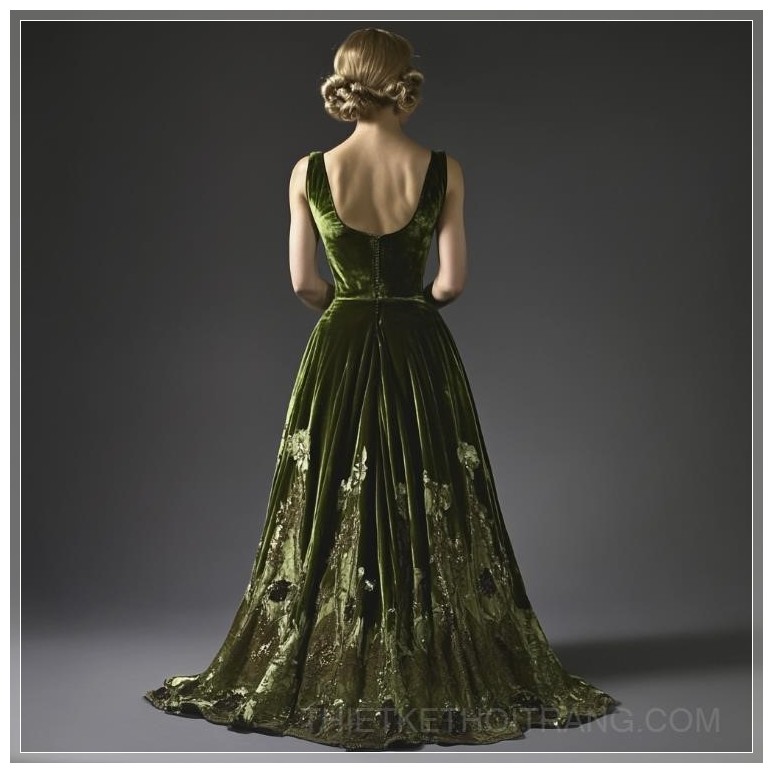 PROMPT: 1930s evening dress green velvet --v 6.1 Ý Nghĩa: Đầm dạ hội màu xanh nhung kiểu dáng thập niên 1930, thiết kế tinh tế, mang phong cách cổ điển với đường cắt thanh thoát, phù hợp với các buổi tiệc tối sang trọng.