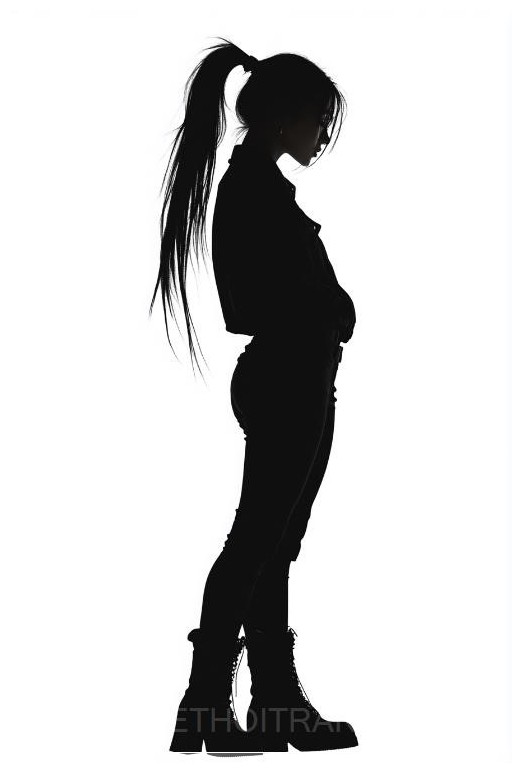 Bóng dáng của cô dường như hòa mình vào không gian vô hình, tạo nên một hình ảnh đầy ẩn ý. Ánh sáng nhẹ nhàng chiếu từ phía sau, làm nổi bật từng đường cong của cơ thể, nhưng cũng giữ cho khuôn mặt cô luôn là một bí mật không thể giải mã. Mỗi chi tiết trong hình ảnh này – từ đôi ủng cho đến mái tóc được buộc chặt – đều mang đến một cảm giác thanh thoát và quyết đoán.