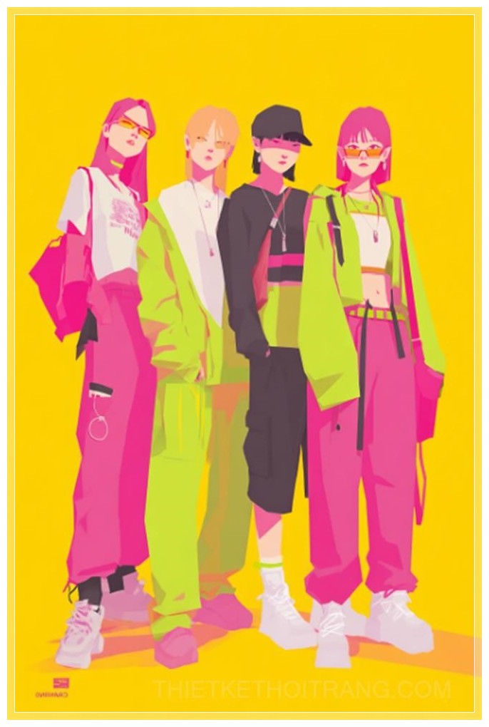 Trong thế giới nghệ thuật kỹ thuật số hiện nay, một tác phẩm nổi bật với màu sắc bão hòa cao không chỉ thu hút ánh nhìn mà còn thể hiện sự sáng tạo và cá tính mạnh mẽ. Những hình ảnh minh họa được vẽ tay một cách tinh tế, với những nhân vật đầy phong cách, kết hợp với màu sắc tươi sáng và thiết kế thời trang hiện đại, tạo nên một bức tranh sống động và ấn tượng. Mỗi nét vẽ mang đậm tính nghệ thuật, không chỉ khắc họa hình ảnh mà còn là sự bộc lộ cảm xúc và phong cách của người nghệ sĩ.